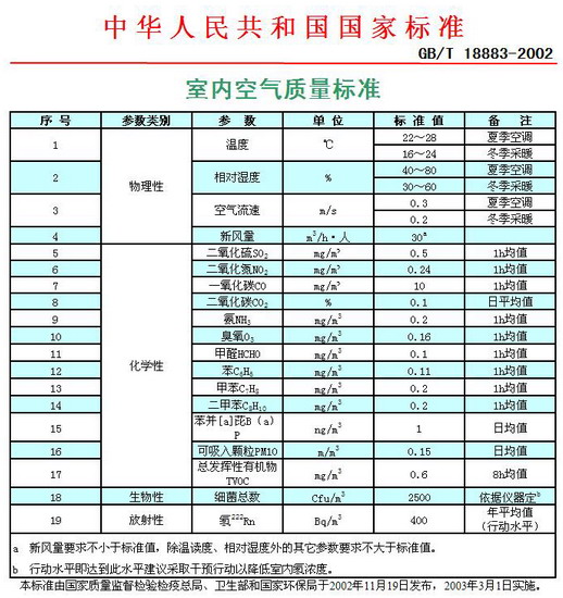 GB/T18883-2002《室內空氣質量標準》